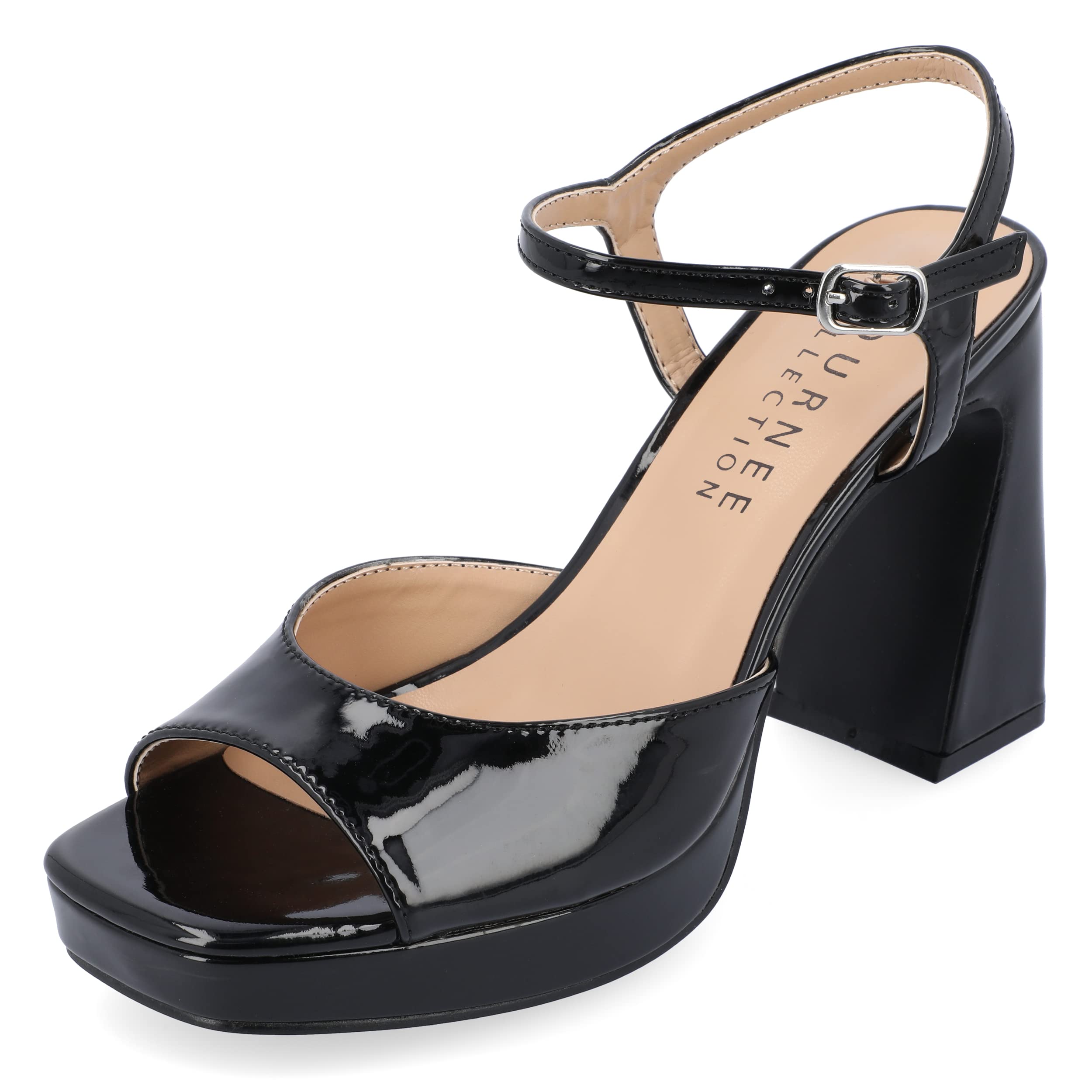Journee Womens Ziarre Patent Vegan Leather Ankle Strap Platform Dress Sandals